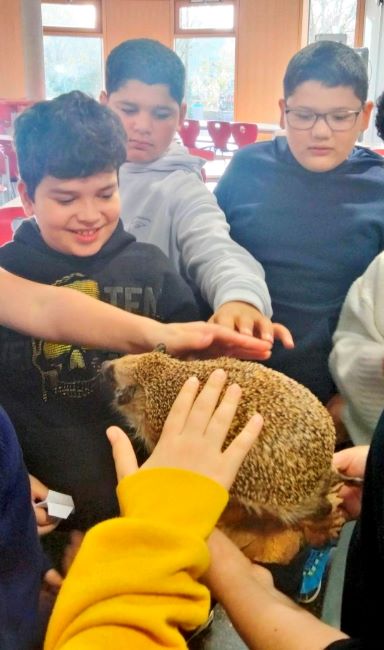 Am 11.11.besuchte uns Frau Waldmann von der Igelstation "Henriette" in Bonn. Im Rahmen unserer Herbstepoche im Biologieunterricht erzählte sie den Schülern und Schülerinnen der Klasse 5 etwas über die Notwendigkeit einer Igelstation, über in Not geratene Igel, wie man sie rettet und schützt.